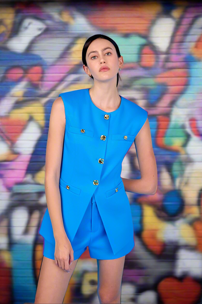 Royal Blue Linen Long Vest Top